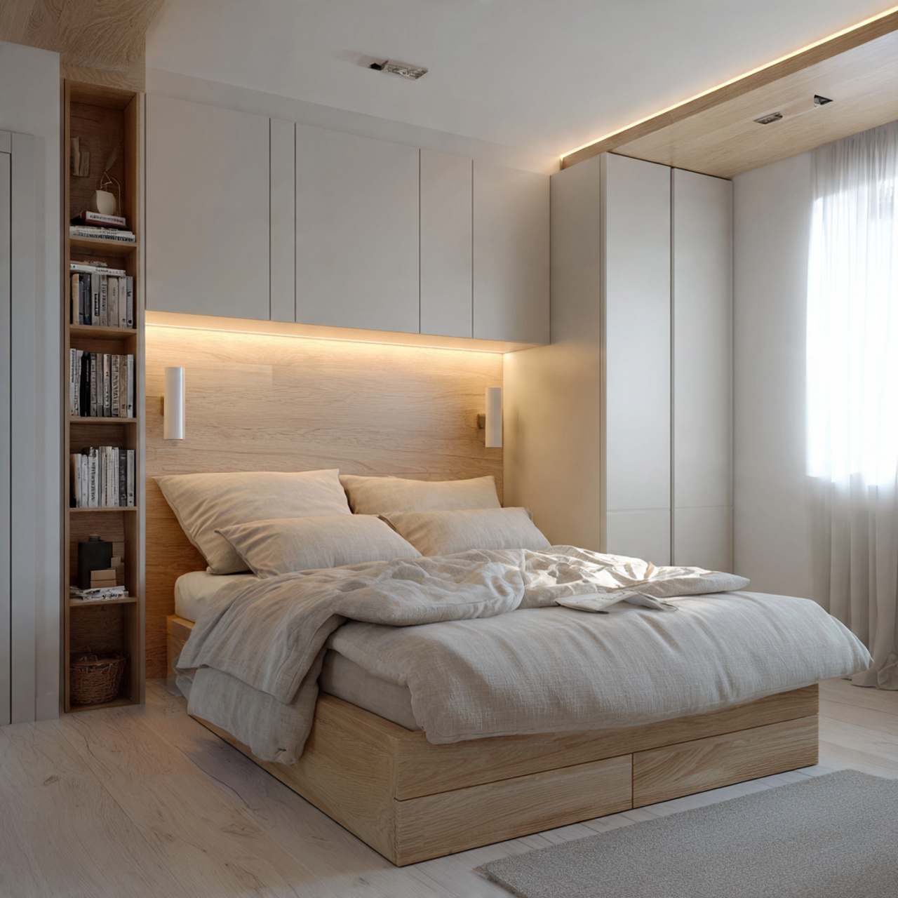 This is a fantastic way to highlight cherished collections, books, or decorative artifacts while adding depth and avoiding a flat, uniformly lit look. The subtle downward flow of light is inviting and can contribute significantly to the overall soft ambiance you are trying to cultivate with your chosen Bedroom Lighting Ideas.